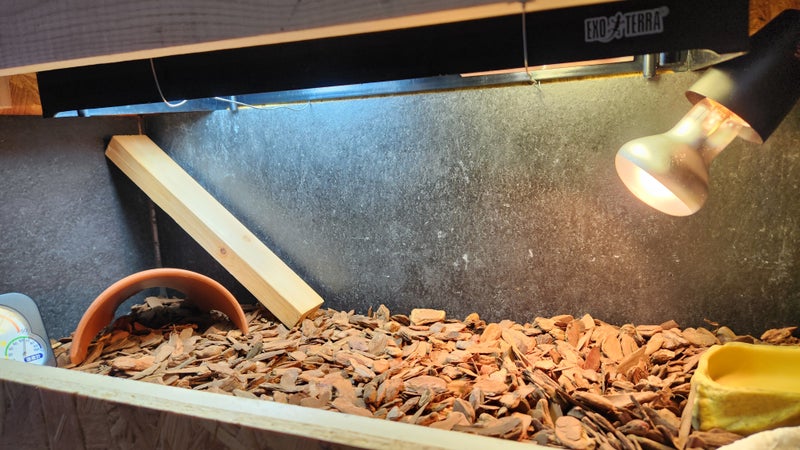 ・日光浴・紫外線は大事なので、天気のいい日は日向ぼっこ。普段はケージでのライトです。