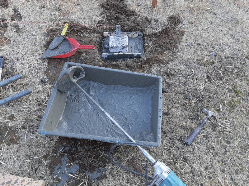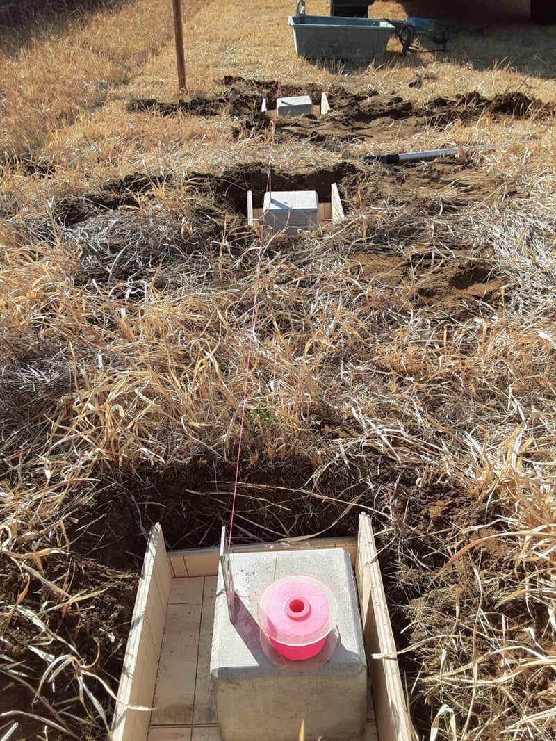 まず、柱を固めるための束石。穴を掘ってコンクリートで固めよう![]()