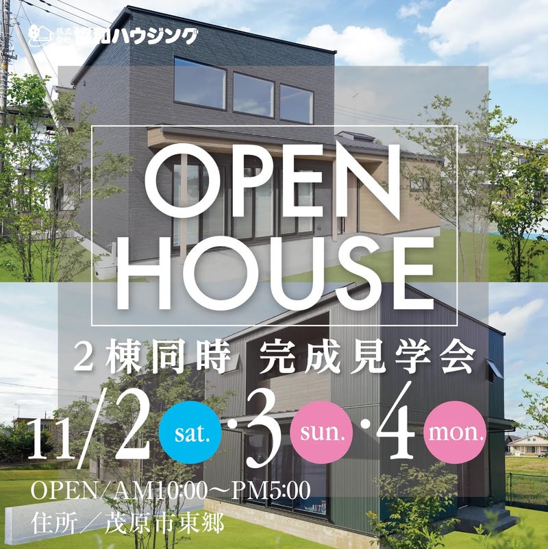 明日より11月2日(土)・3日(日)・4日(祝月)の3日間、千葉県茂原市東郷にて2棟同時完成見学会を開催します!✨ 新しい住宅の雰囲気や機能性を実際に体験できる機会ですので、皆さまのご来場を心よりお待ちしております🏡