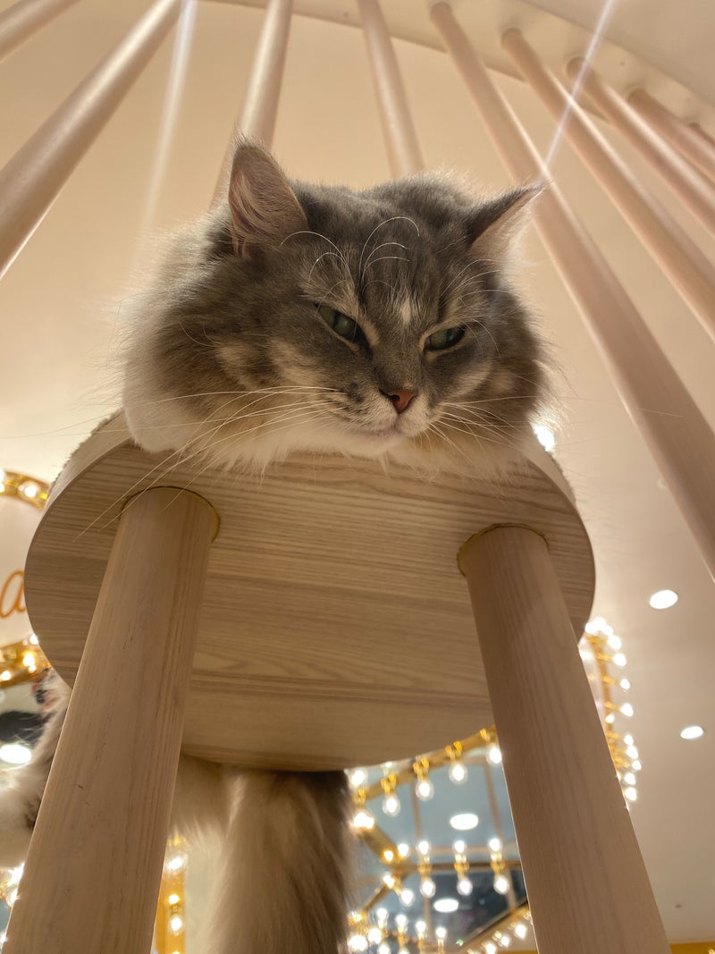 ↓高い位置にある小さいスペースでゆっくりしている猫![]()