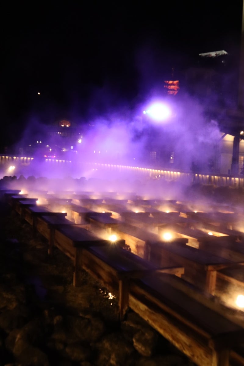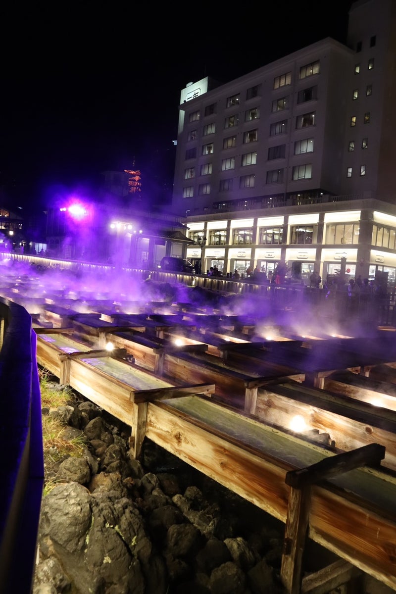 紫色の照明に照らされた湯畑がとてもきれいでした!