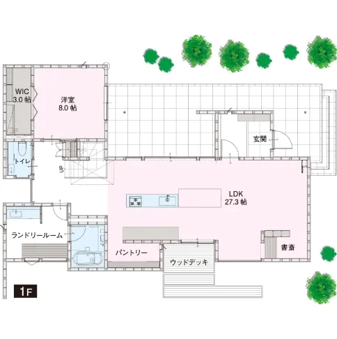自然光が差し込む明るいランドリールーム。動線を考えた配置で、毎日の洗濯作業をスムーズに行えます。