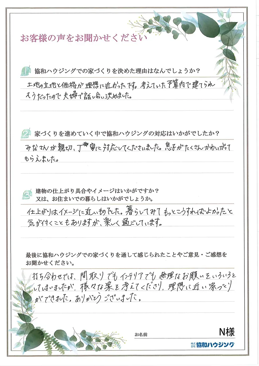 - 家づくりを進めていく中で協和ハウジングの対応はいかがでしたか?