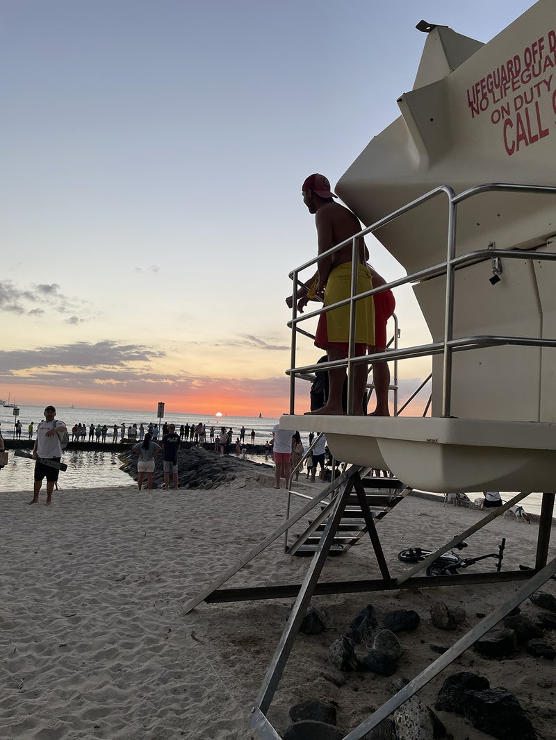ハワイの夕暮れは本当に美しく、水平線に沈むオレンジ色の夕日をビーチ沿いで眺めながら、