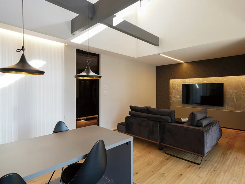 ダウンライトは天井面がフラットになるので、圧迫感がなく