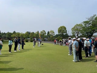 さすがはゴルフ経験豊富なOBの皆さま。安定感あるプレーに、社員は尊敬のまなざし![]()