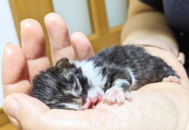 へその緒がついたまま、目も耳もまだ開いていなくて、本当に生まれたばかり![]()