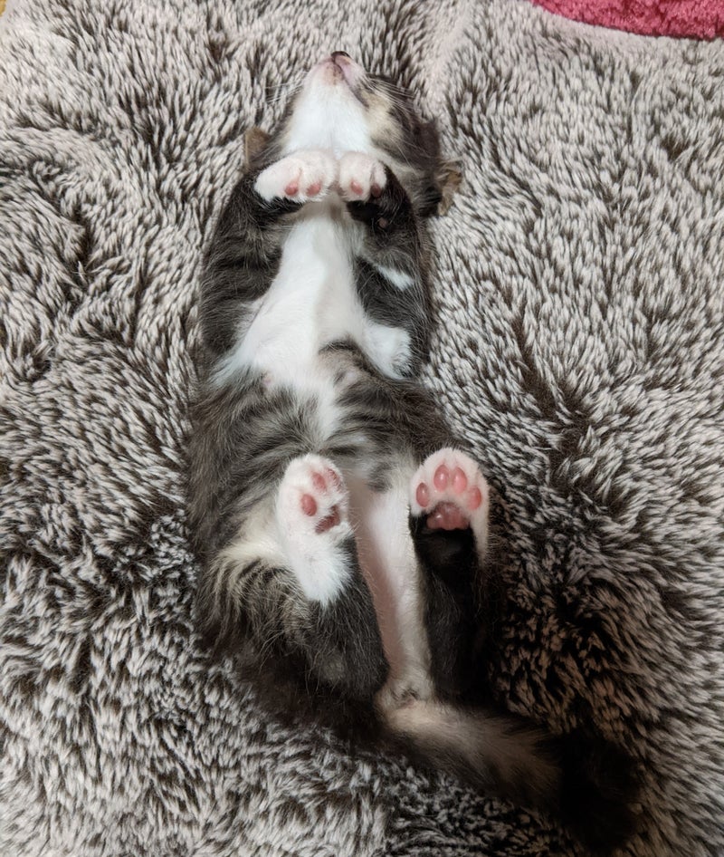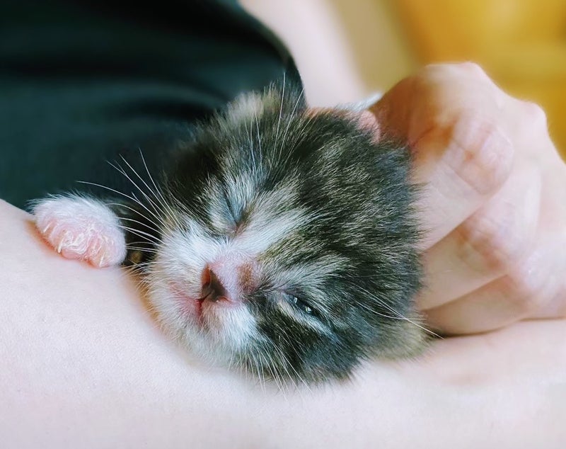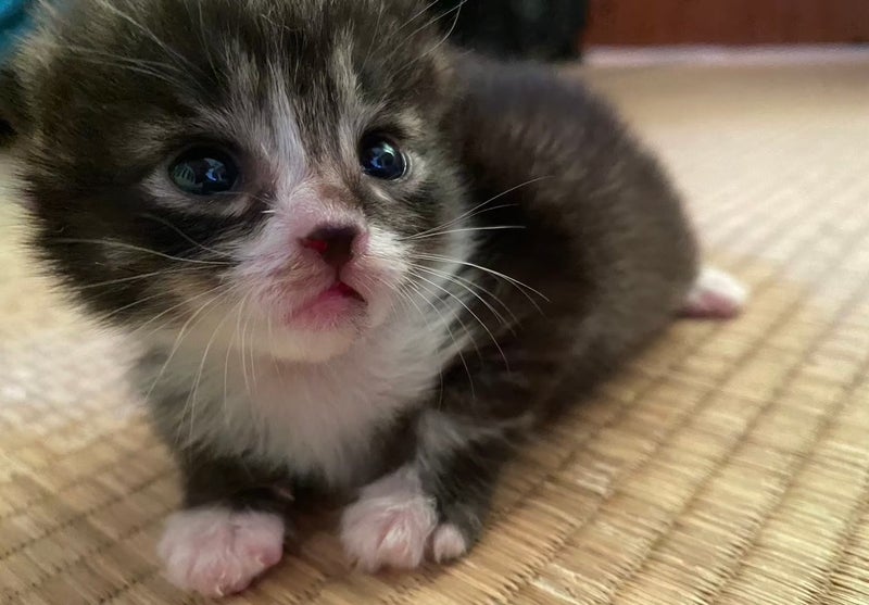父が家の近所を散歩中に、道ばたで小さな赤ちゃん猫を見つけて連れて帰ってきました!