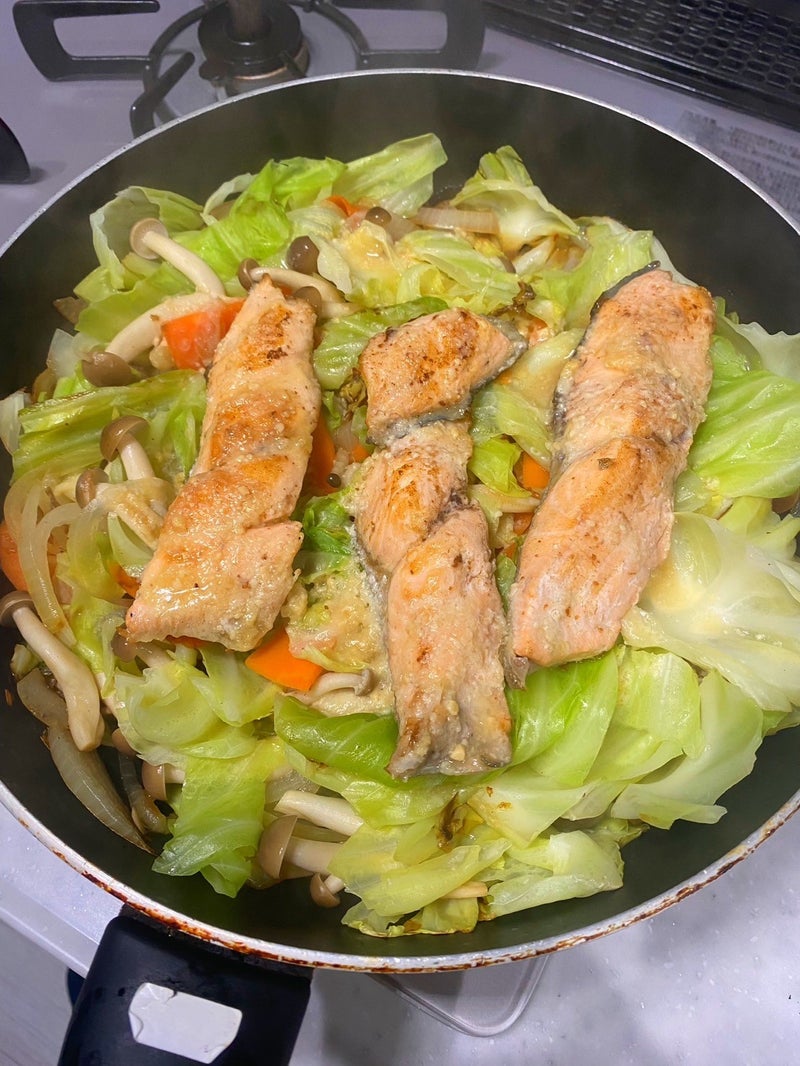 うお座や野菜にんじんも食べてもらうためにちゃんちゃん焼きキラキラ