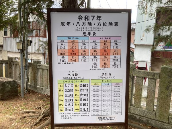 境内には厄年の表が貼ってありました。