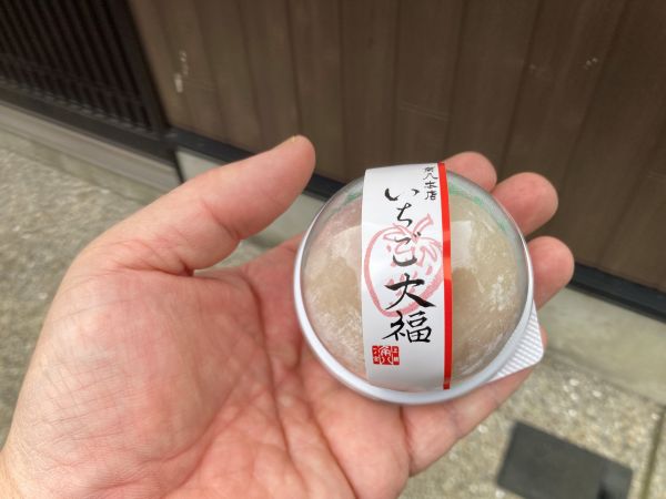 門前町にある和菓子屋さんでいちご大福を購入