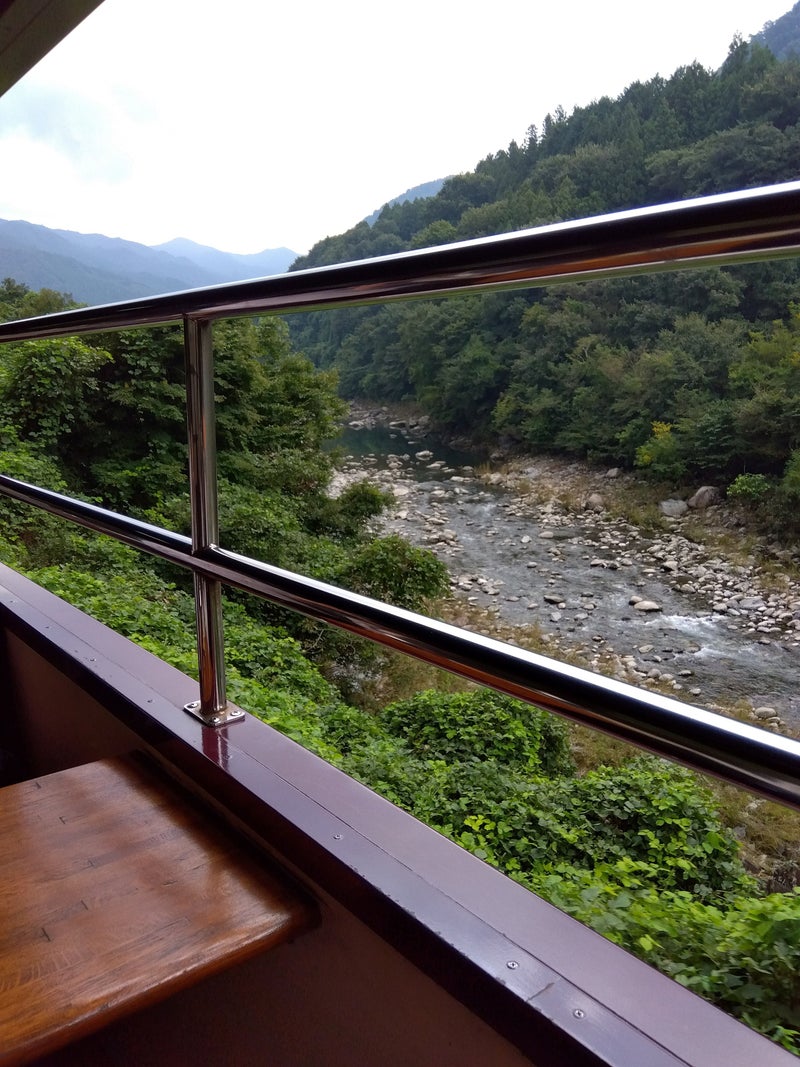 車窓から渡良瀬川を見ることができ、風も気持ち良く清々しい気分になりますおねがい