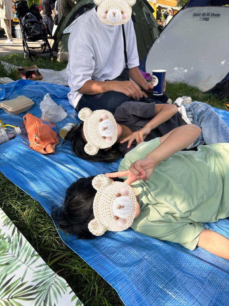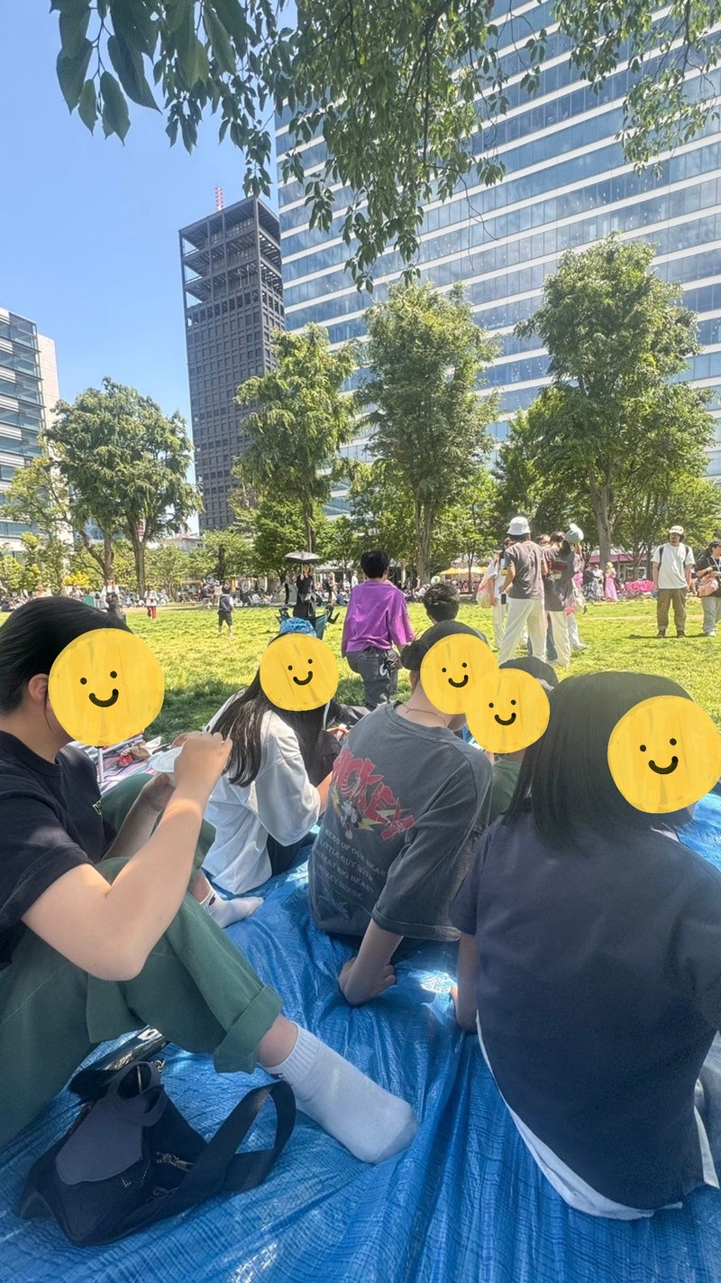 芝生の上にレジャーシートを敷いてピクニック気分![]()