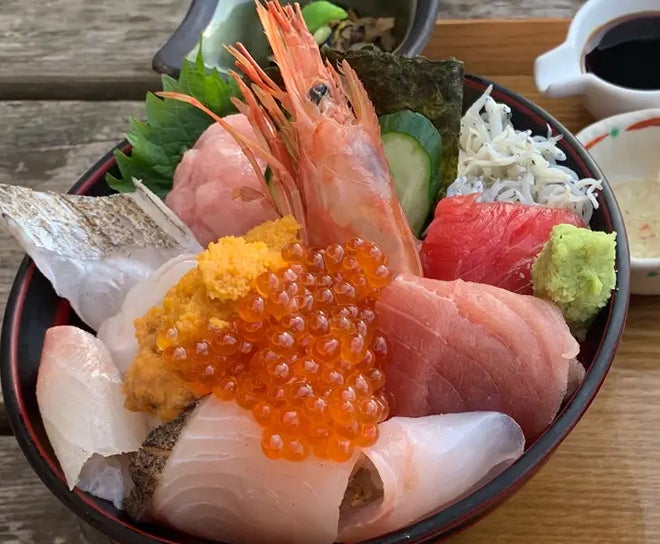 食事は館山なぎさ食堂の海鮮丼と館山のソウルフード!