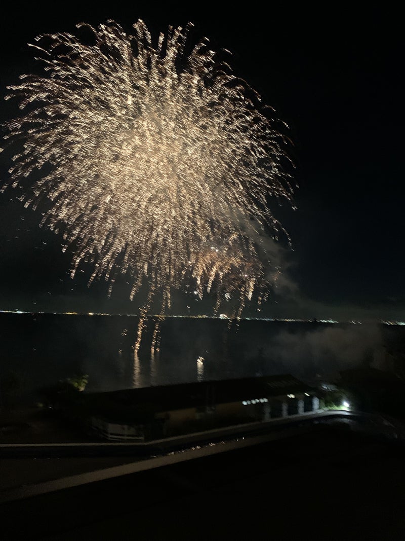 8時半から花火が上がる予定だったのですが、ついつい欲張って食べてしまい部屋へ戻ったのが8時35分でした。(もちろん最後まで食べていたのは私です。笑)