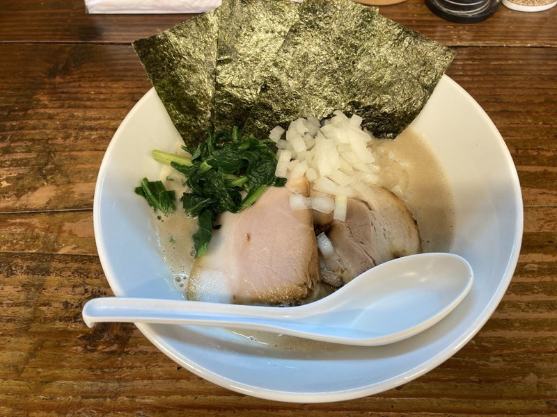 上質な豚の背脂を贅沢に使用したコクのあるこってりスープに、硬めに茹で上げた自家製の中太麺が特徴です。