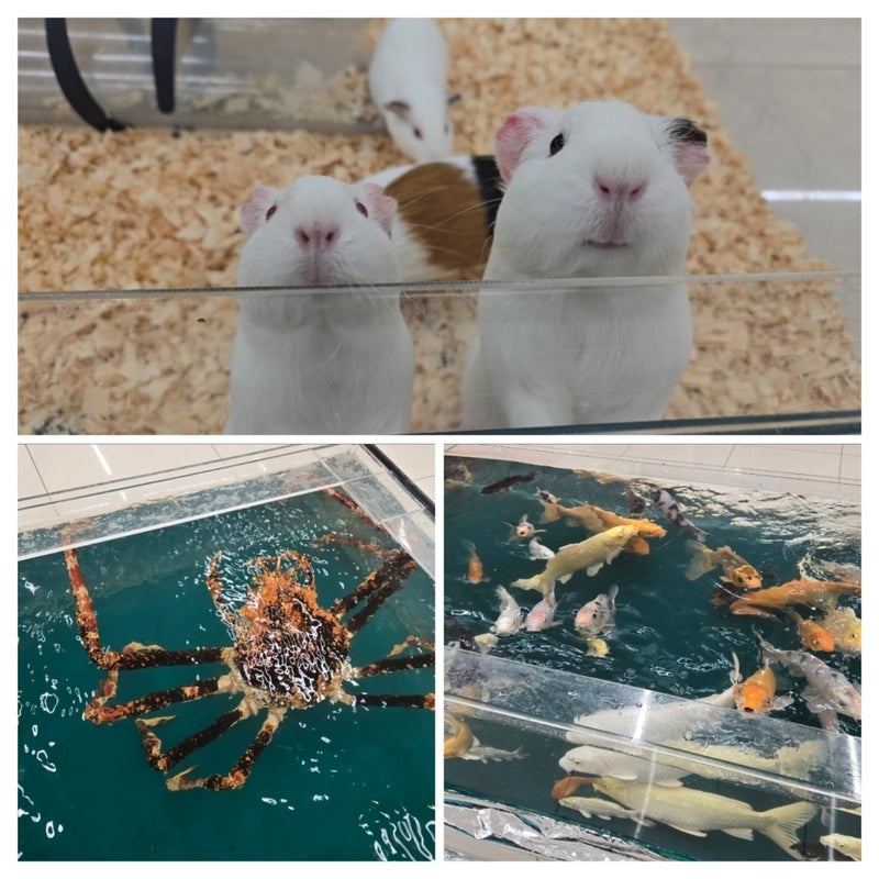 本当に様々な種類の動物たちと触れ合うことができるのですが、なんとここではカニやコイ等の水生生物とも触れ合うことができるんです![]()