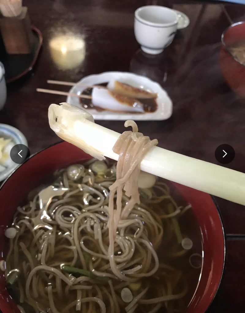 昼食で立ち寄った「金太郎そば山本屋」でも、やはり蕎麦にネギが添えられていました。
