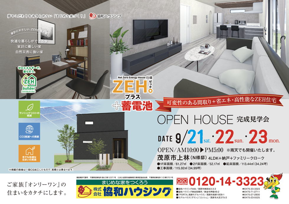9/21(土)・22(日)・23(祝月)完成見学会(茂原市上林)