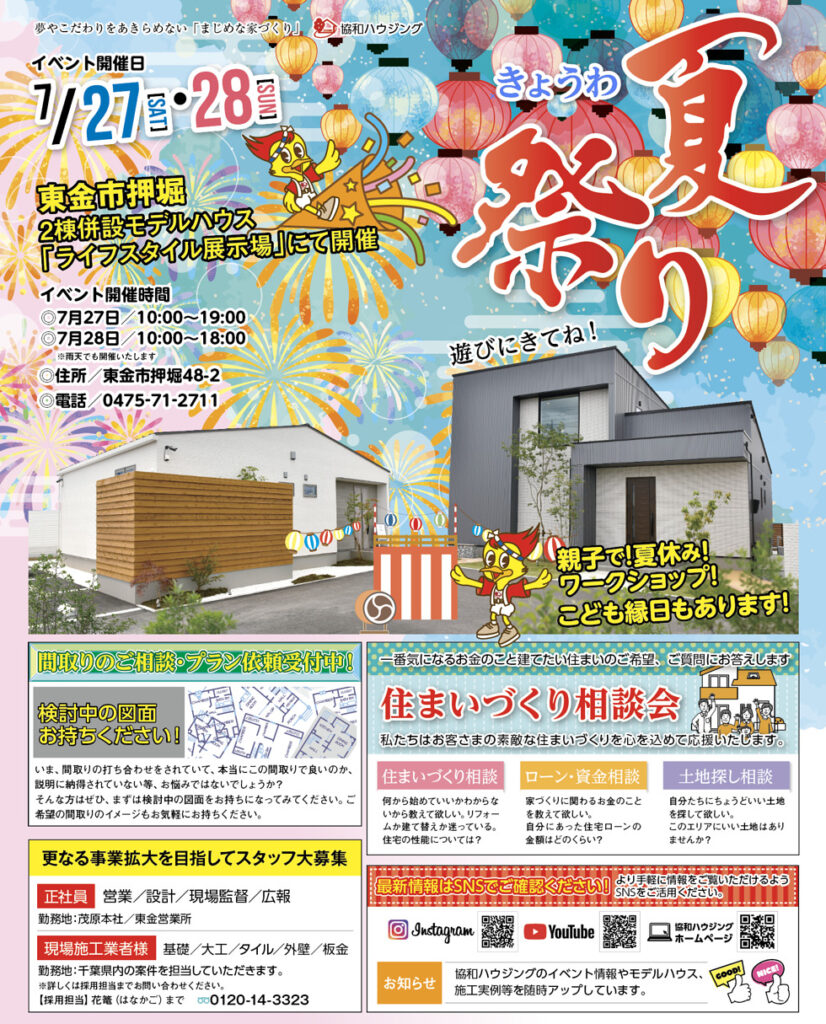 7/27(土)・28(日)東金「ライフスタイル展示場」夏まつり&家づくり相談会開催