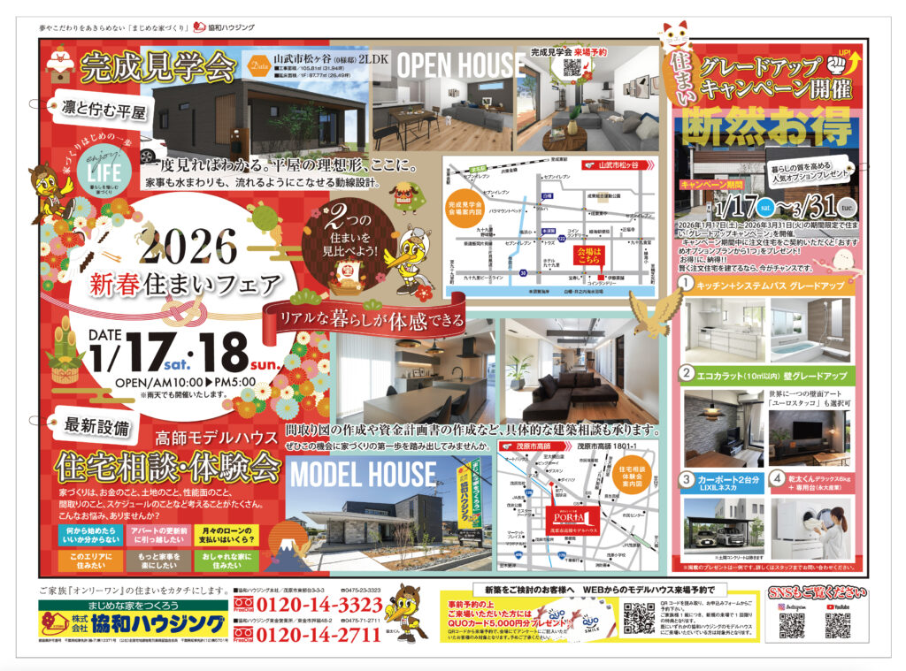1/17(土)・18(日)新春住まいフェア!高師モデルハウス内覧会(茂原市高師)完成見学会(山武市松ヶ谷)