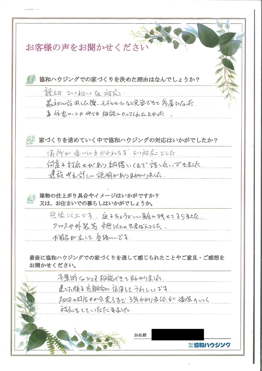 - 家づくりを進めていく中で協和ハウジングの対応はいかがでしたか?