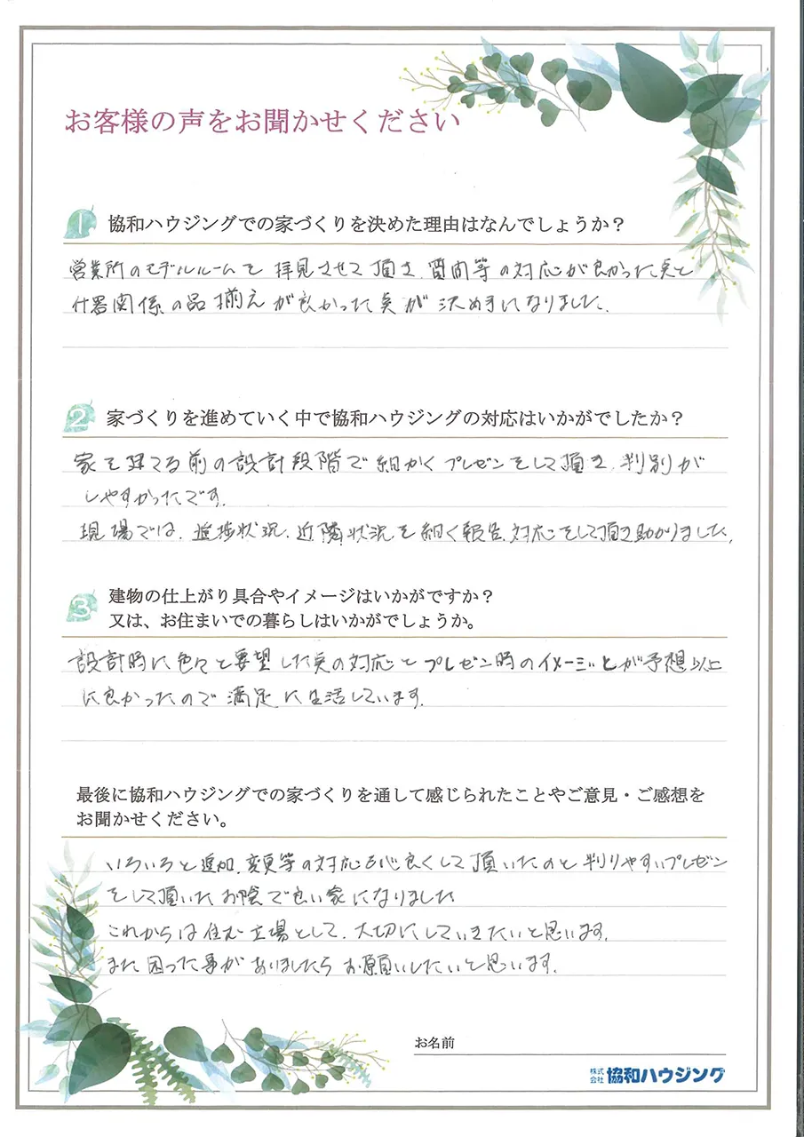 - 家づくりを進めていく中で協和ハウジングの対応はいかがでしたか?