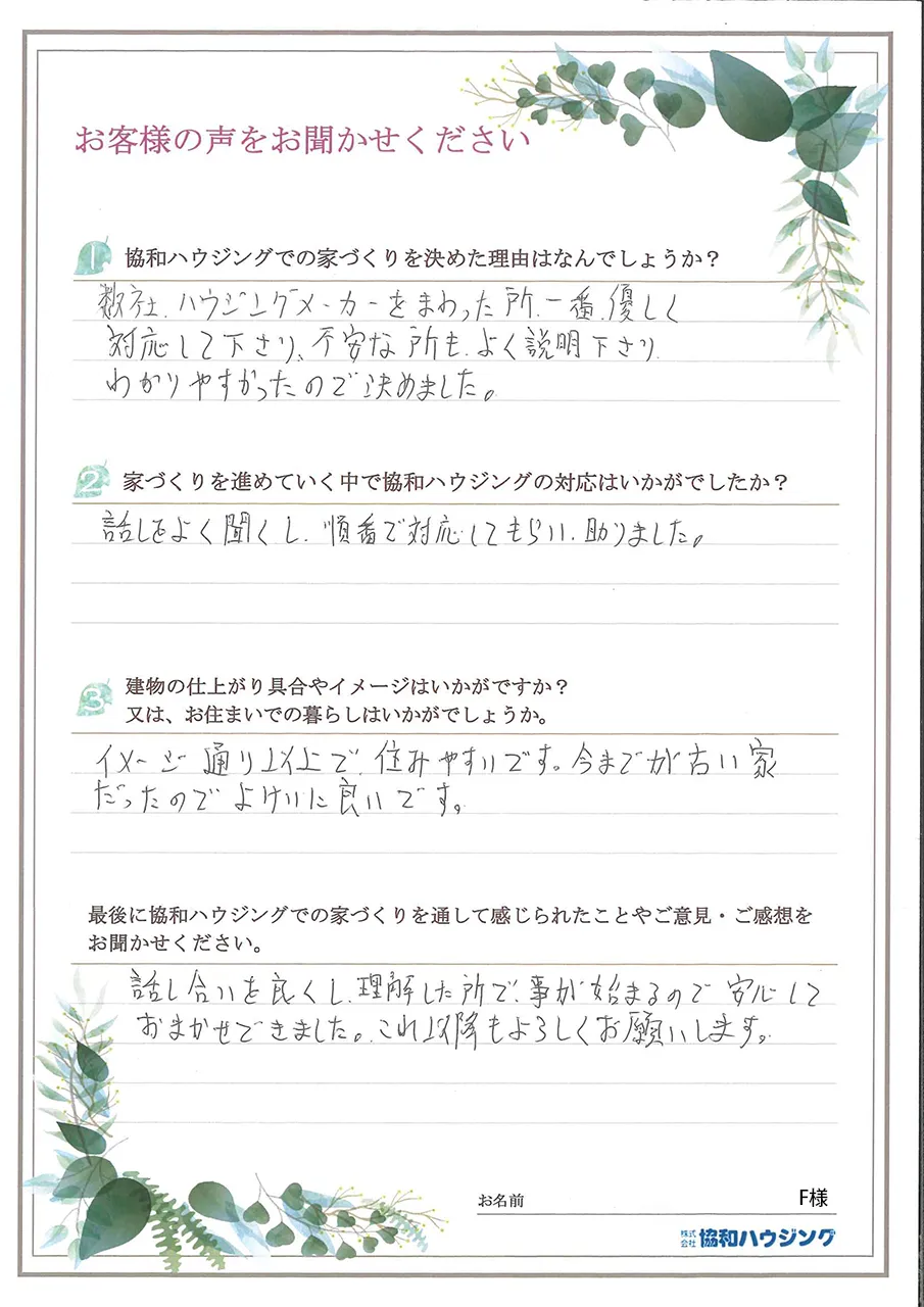 家づくりを進めていく中で協和ハウジングの対応はいかがでしたか?